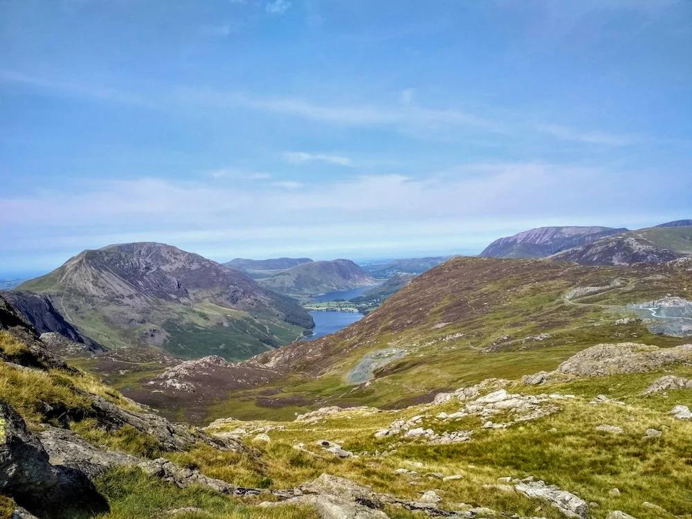 Du befinner dig nu i Lake District’s nationalpark och dagen börjar med att du vandrar längs Ennerdale Water med fantastisk utsikt över de närliggande bergen. Härifrån har du två alternativ – antingen kan du gå upp till Red Pike och över High Stile till de ikoniska Haystacks och förbi Inominate Tarn (där Wainwrights aska spreds) eller följa en lättare väg upp till Black Sail Youth Hostel och sedan upp till Loft Beck. Båda rutterna tar dig till gruvan Honister Slate, den sista aktiva skiffergruvan i England, innan du går ner till byn Rosthwaite.