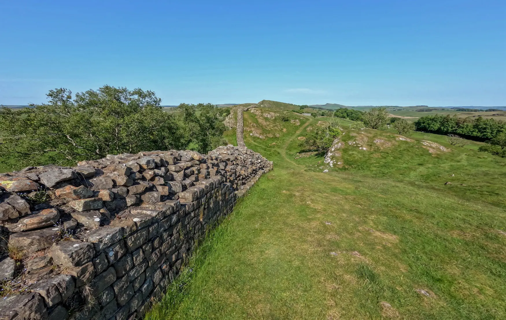 Sträckan är omväxlande och tar dig genom några av Englands vackraste landskap. Du går från de mer tättbebyggda områdena kring Newcastle vidare in i ett böljande jordbrukslandskap till den kargare mittersta delen mellan Chollerford och Birdoswald. Här når du bland annat Winshield Crags som med sina 345 meter över havet är den högsta punkten längs leden. I detta område är muren som mest framträdande och landskapet som mest spektakulärt. Här får du på riktigt en känsla av hur det romerska imperiets norra gräns en gång bevakades med välbevarade fort som Housesteads och Vindolanda som naturliga stopp längs vägen.