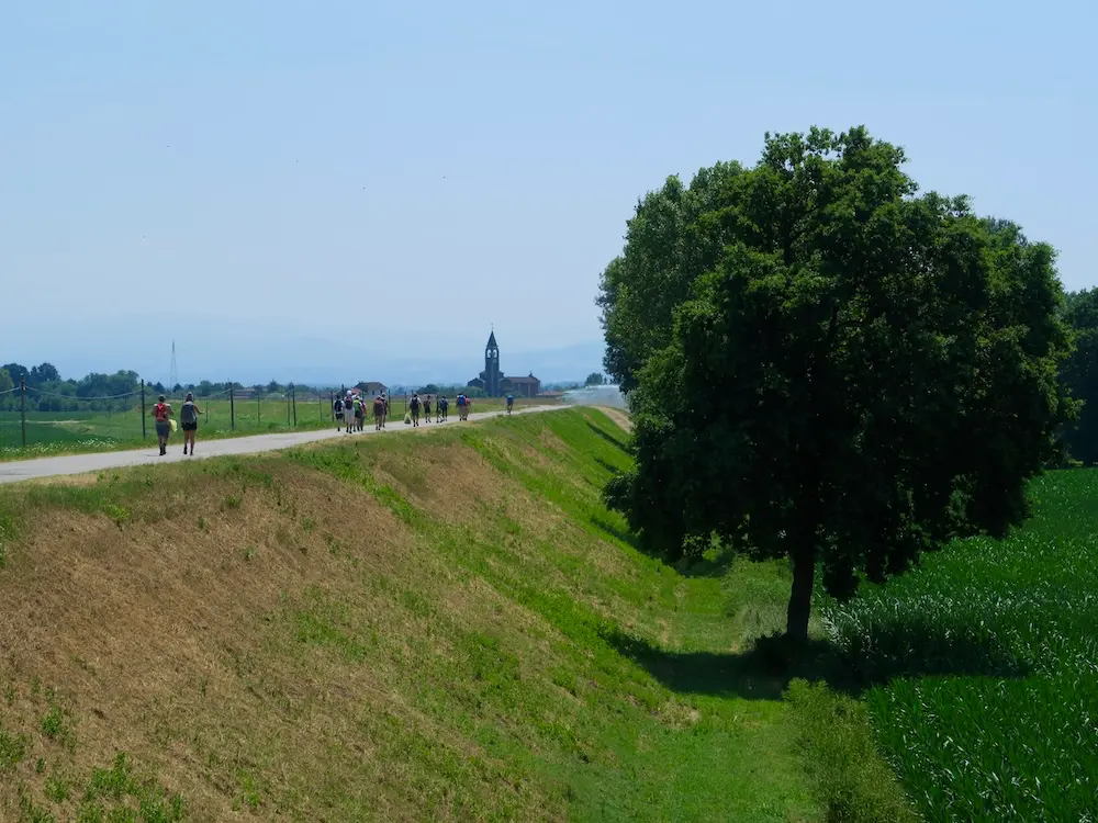 Denna del av Via Francigena går genom flack jordbruksbygd från Pavia i Lombardiet till Fidenza i Emilia Romagna. Precis som de historiska pilgrimerna korsar du floden Po med en lite färja.