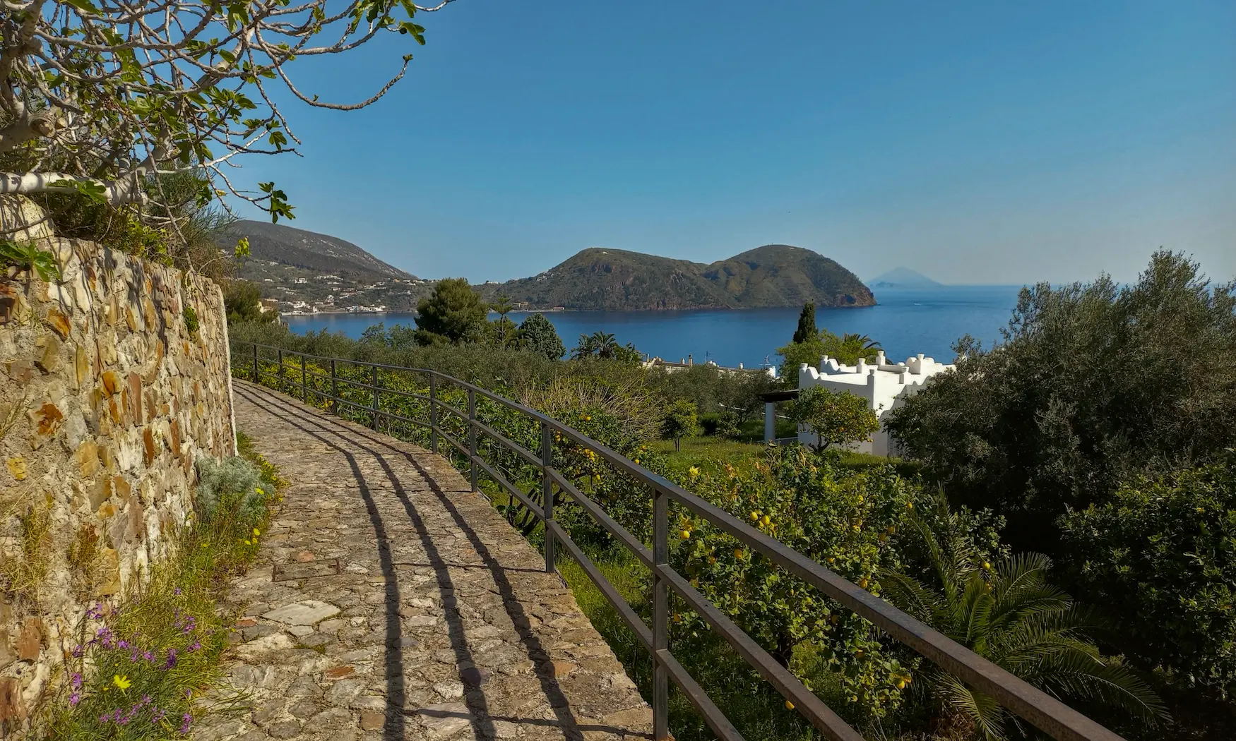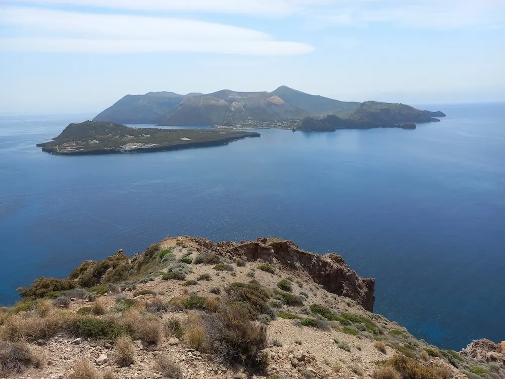 Havet är ständigt närvarande under denna vandringsresa på de eoliska öarna. Med sina skiftande blå nyanser står det i skarp kontrast till fiskebyarnas intensiva vithet och den svarta lavan.